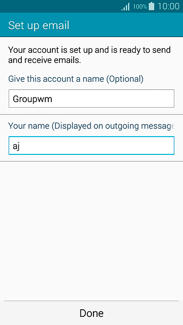If the display tells you that your email account has been set up, follow the instructions on the display to select more settings and finish the setup.