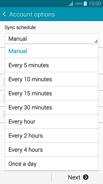 Press the drop down list below "Sync schedule".