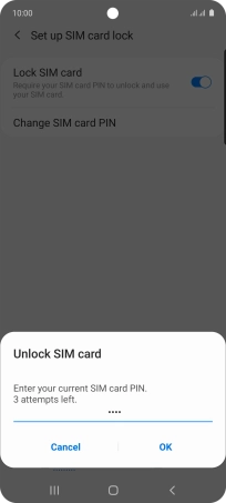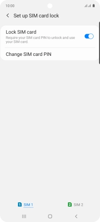 Press the indicator next to "Lock SIM card" to turn the function on or off.