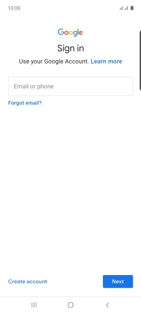 If you don't have a Google account, press Create account and follow the instructions on the screen to create an account.
