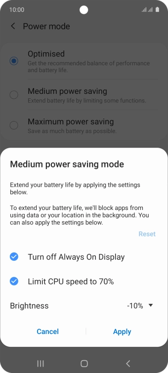 Press Power mode.