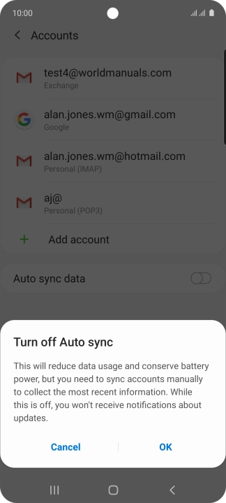 Press the indicator next to "Auto sync data" to turn the function on or off.