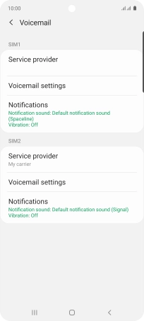 Press Voicemail settings below the required SIM.
