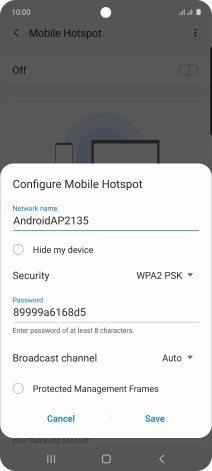 Press WPA2 PSK to password protect your Wi-Fi hotspot.