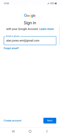If you don't have a Google account, press Create account and follow the instructions on the screen to create an account.