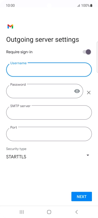 Press the field below "Username" and key in the username for your email the email provider's outgoing server.