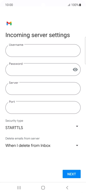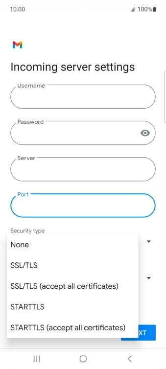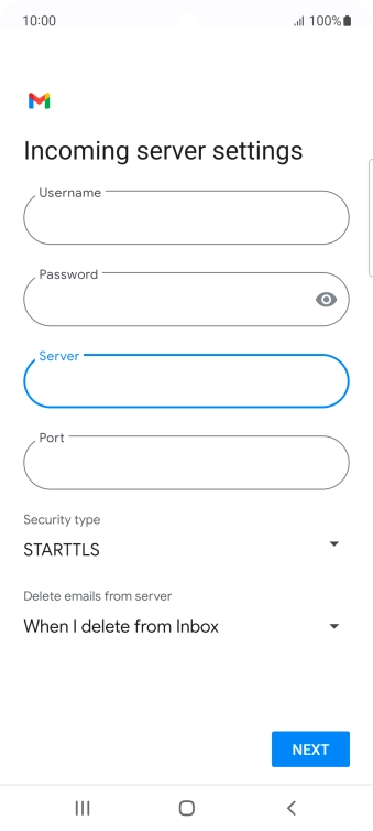 Press the field below "Server" and key in the name of your email provider's incoming server.