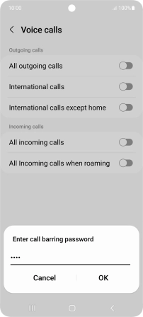 Key in your barring password and press OK. The default barring password is 0000.