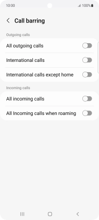 Press the indicator next to the required barring type to turn the function on or off.