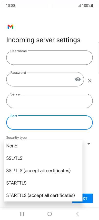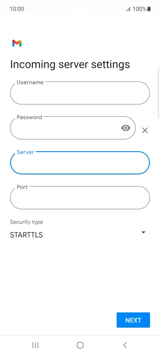 Press the field below "Server" and key in the name of your email provider's incoming server.