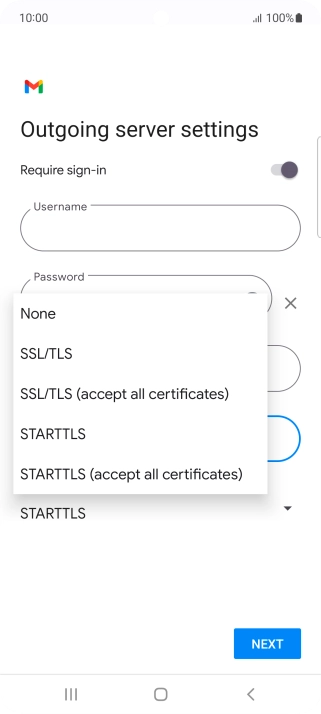 Press the field below "Username" and key in the username for your email the email provider's outgoing server.