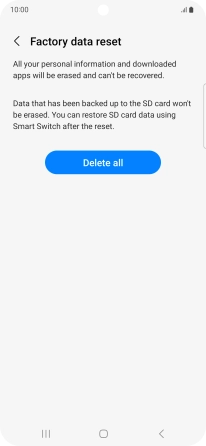 Press Delete all. Wait a moment while the factory default settings are restored. Follow the instructions on the screen to set up your phone and prepare it for use.