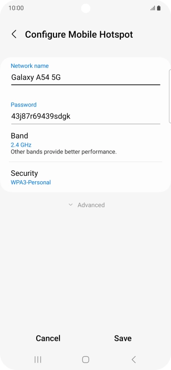 Press WPA3-Personal to password protect your Wi-Fi hotspot.