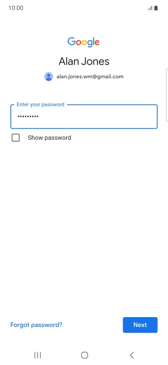If you don't have a Google account, press Create account and follow the instructions on the screen to create an account.