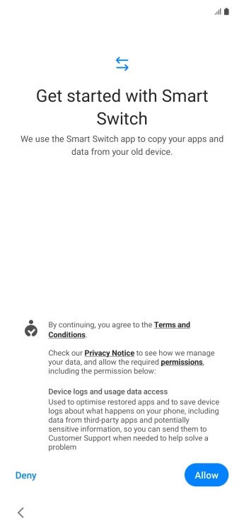 Press the required setting and follow the instructions on the screen to transfer the content from another phone.