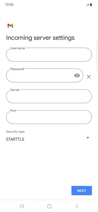 Press the field below "Server" and key in the name of your email provider's incoming server.
