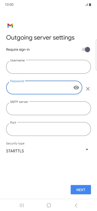 Press the field below "Password" and key in the password for your email account.