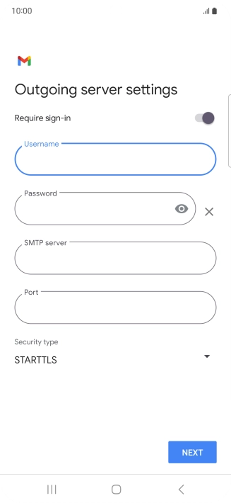 Press the field below "Username" and key in the username for your email the email provider's outgoing server.