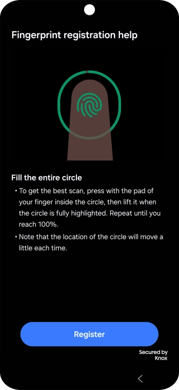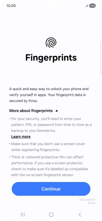 Follow the instructions on the screen to create the phone lock code using your fingerprint.