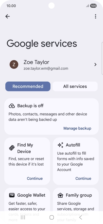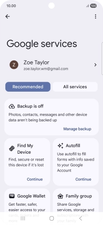 Select settings for Find My Device
