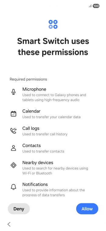 You can transfer the contents of another phone to your phone when it's activated for the first time and after a factory reset. When this screen is displayed, your phone is ready to transfer contents from another phone.