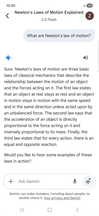 You can use Gemini to generate text, create various creative content and answer your questions in an informative way. Here you can see some examples of Gemini usage. To use most of the Gemini functions, you need to activate your Google account on your phone and set up your phone for internet.