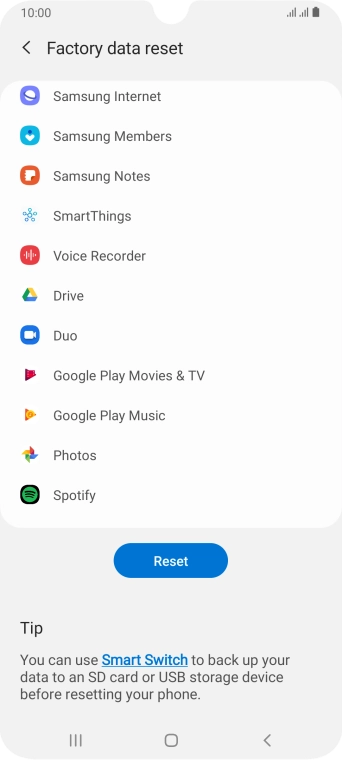 Press Factory data reset.