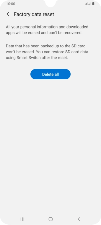 Press Delete all. Wait a moment while the factory default settings are restored. Follow the instructions on the screen to set up your phone and prepare it for use.