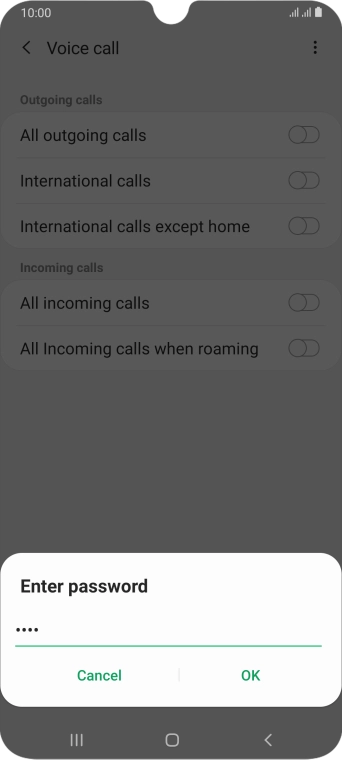 Key in your barring password and press OK. The default barring password is 0000.