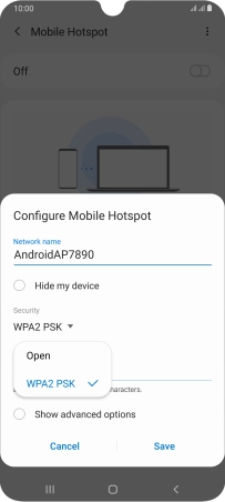 Press WPA2 PSK to password protect your Wi-Fi hotspot.