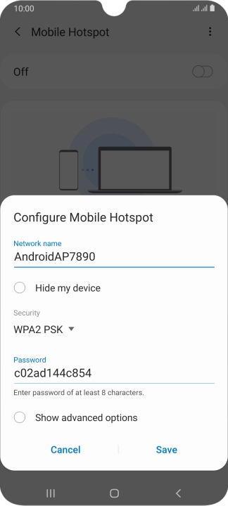 Press WPA2 PSK to password protect your Wi-Fi hotspot.