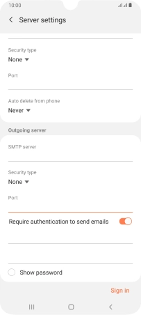 Press the password field and key in the password for your email provider's outgoing server.