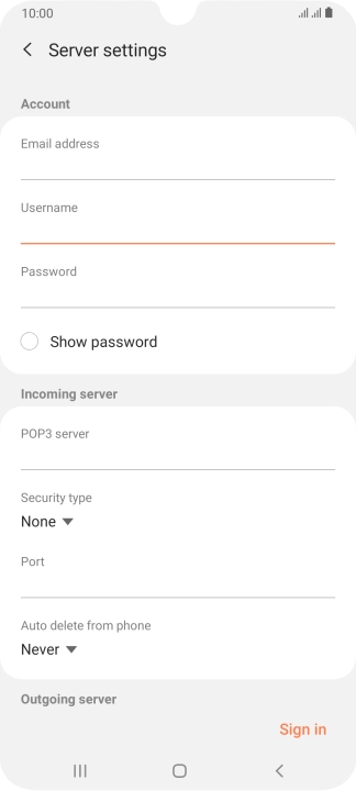 Press the username field and key in the username for your email provider's outgoing server.