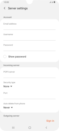 If this screen is displayed, you email account has been recognised and set up automatically. Follow the instructions on the screen to key in more information and finish setting up your phone.