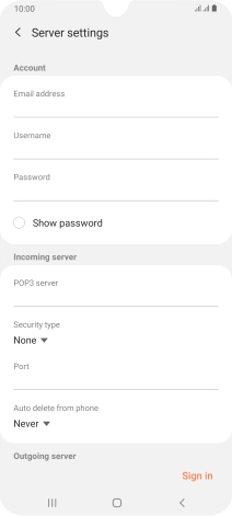 Press Password and key in the password for your email account.