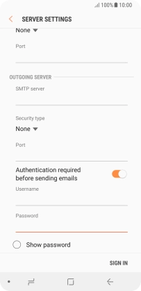 Press the field below "Password" and key in the password of your email provider's outgoing server.