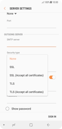Press the field below "SMTP server" and key in the name of your email provider's outgoing server.