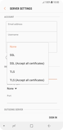 Press the field below "IMAP server" and key in the name of your email provider's incoming server.