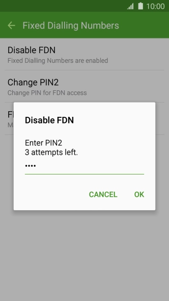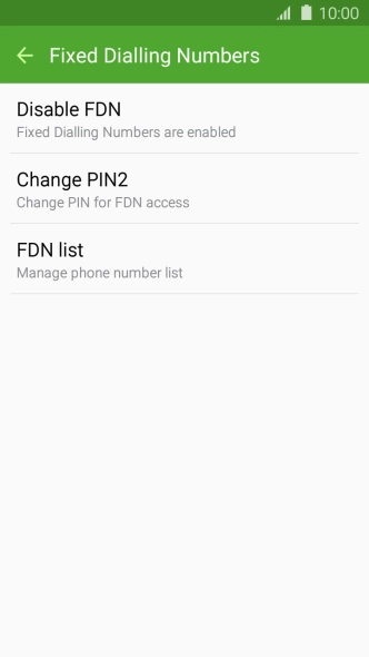 Press Disable FDN to turn off fixed dialling.