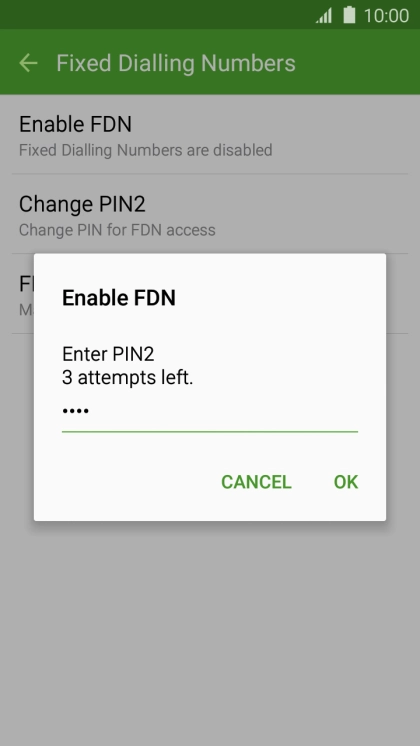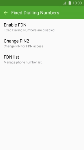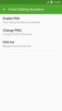 Press Enable FDN to turn on fixed dialling.
