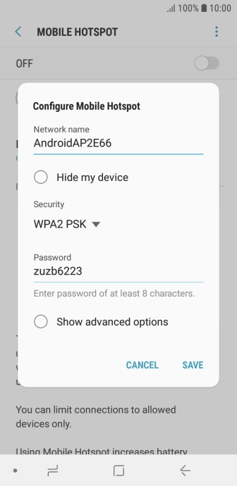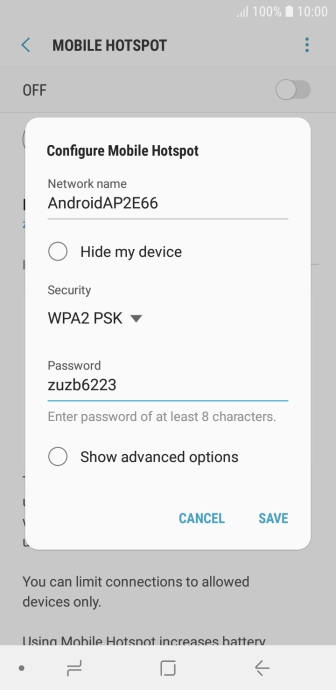 Press WPA2 PSK to password protect your Wi-Fi hotspot.