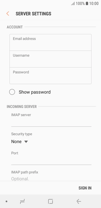Press the field below "IMAP server" and key in the name of your email provider's incoming server.