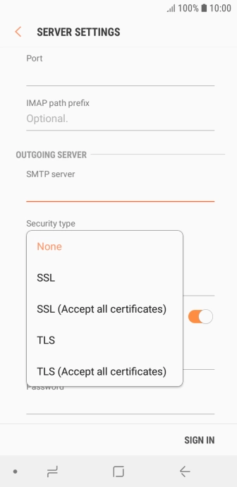 Press the field below "SMTP server" and key in the name of your email provider's outgoing server.