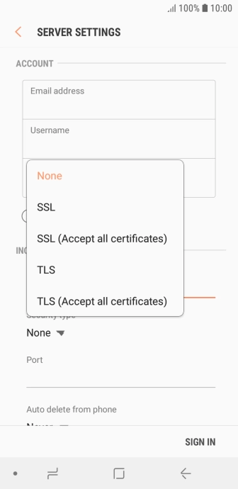 Press When deleted from Inbox to delete email messages on the server when you delete them on your phone.