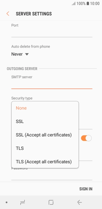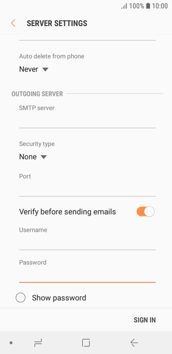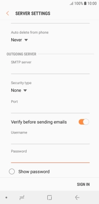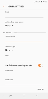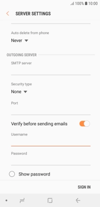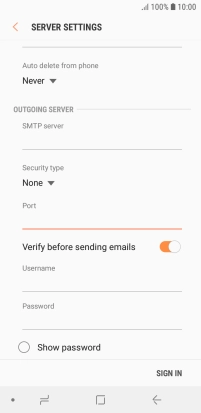 Press the field below "SMTP server" and key in the name of your email provider's outgoing server.