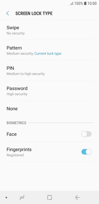 Press Screen lock type and key in the additional phone lock code you created earlier.