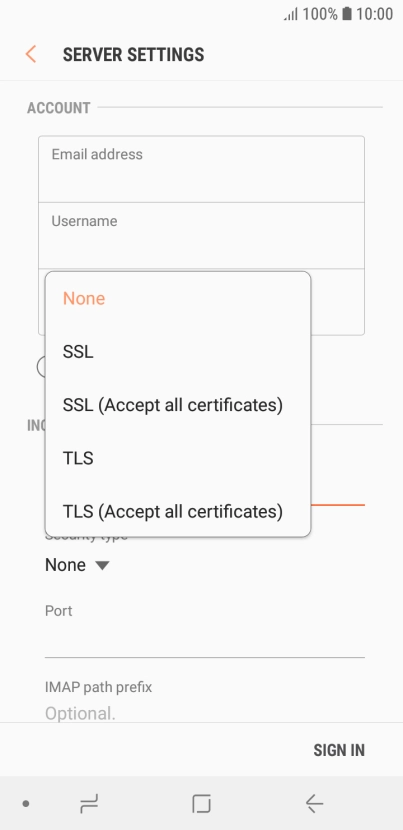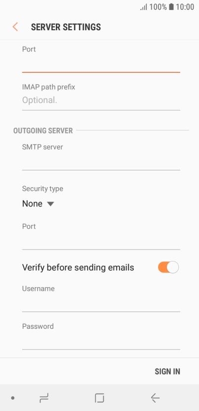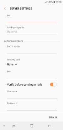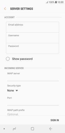 Press the field below "IMAP server" and key in the name of your email provider's incoming server.