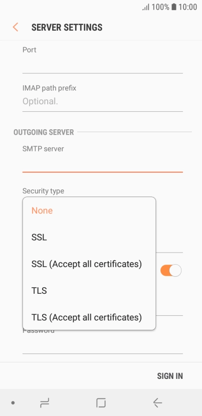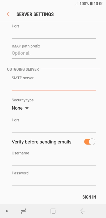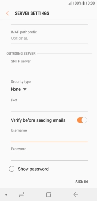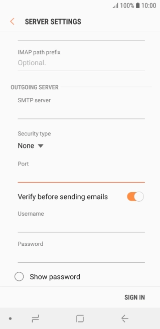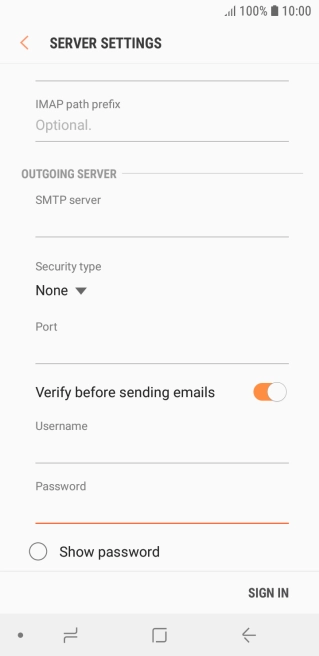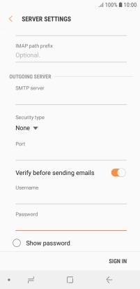 Press the field below "SMTP server" and key in the name of your email provider's outgoing server.