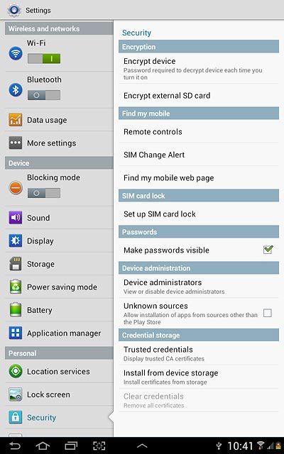 When the box next to the menu item is ticked (V), use of PIN is turned on.