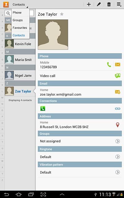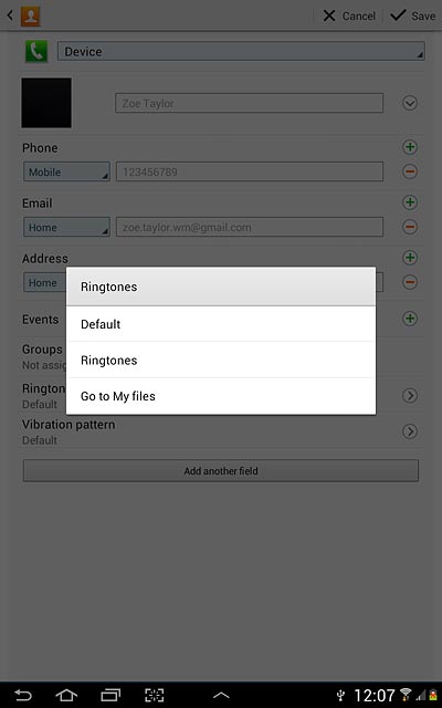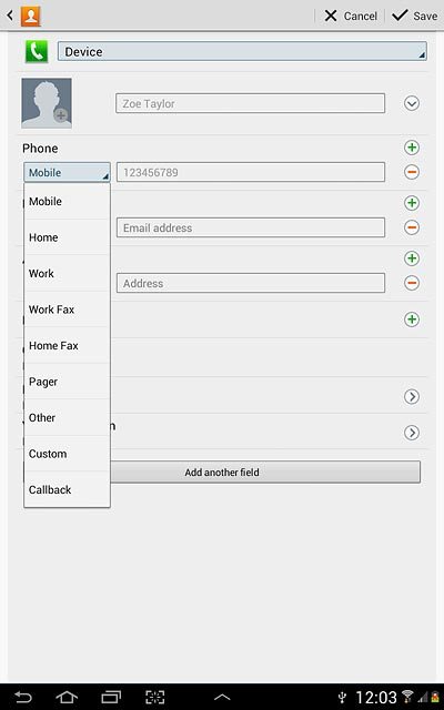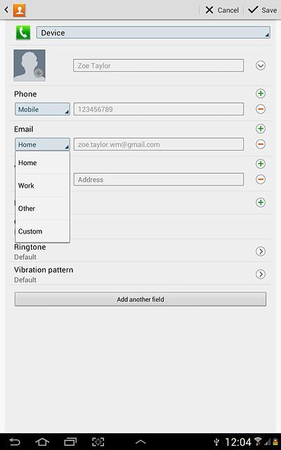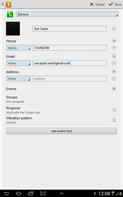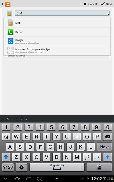 If you select an email account, the contact is attached to this account but is also displayed on your device.